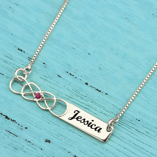 16th födelsedagspresent: Double Infinity Bar Name Necklace