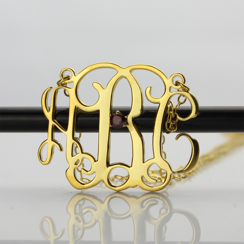 18K guldpläterad kändismonogram halsband graverad födelsesten