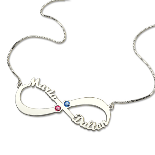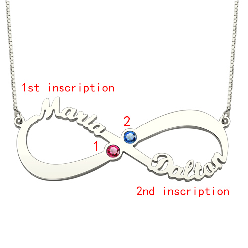 2 namn och födelsestenar Infinity Love Necklace Sterling Silver