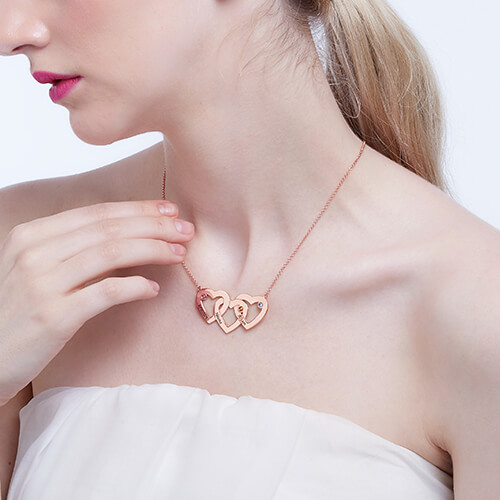 3 sammanflätade hjärtan Birthstones Name Necklace Rose Gold