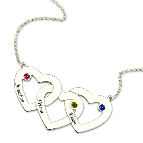 3 sammanflätade hjärtan Birthstones Namn halsband sterling silver