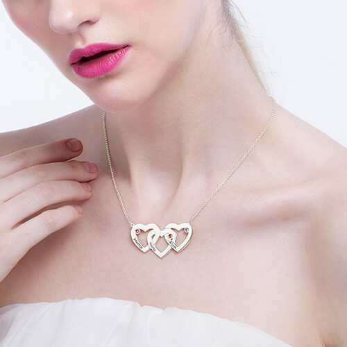 Vi har hittat den perfekta gåvan för mammor överallt, det sammanflätade hjärthalsbandet med födelsetstenar! Nu kan du gravera upp till tre hjärtan och välja en födelsesten för varje hjärta. Mamma kan hålla sina barn nära oavsett hur långt de är. Även om du inte är en mamma kommer du fortfarande att älska det här halsbandet! Skriv in de saker som får dig att tänka på kärlek!