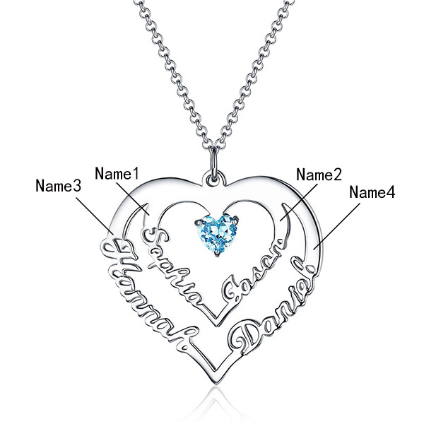 Det här klassiska hjärthalsbandet kan graveras med fyra namn på din kärlek, hålla dem nära ditt hjärta, med och en fantastisk födelsestenkristall utsökt utformad i centrala. Visa din kärlek till din bästa vän eller älskare med denna delikata bit. För löfte om alltid och för alltid.