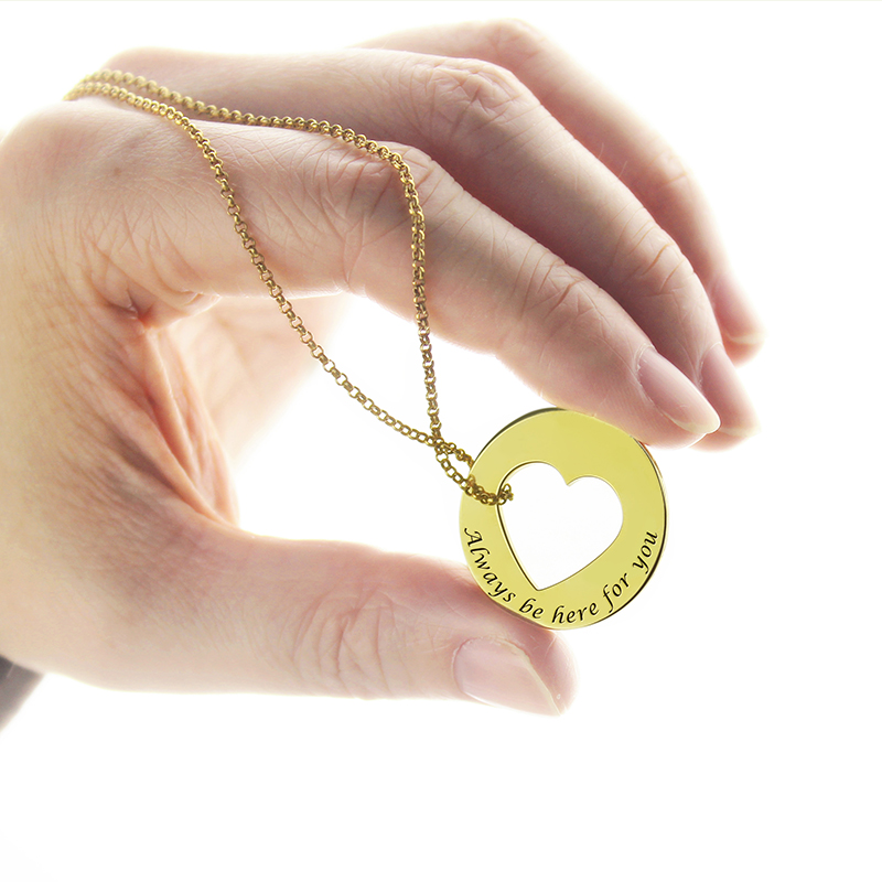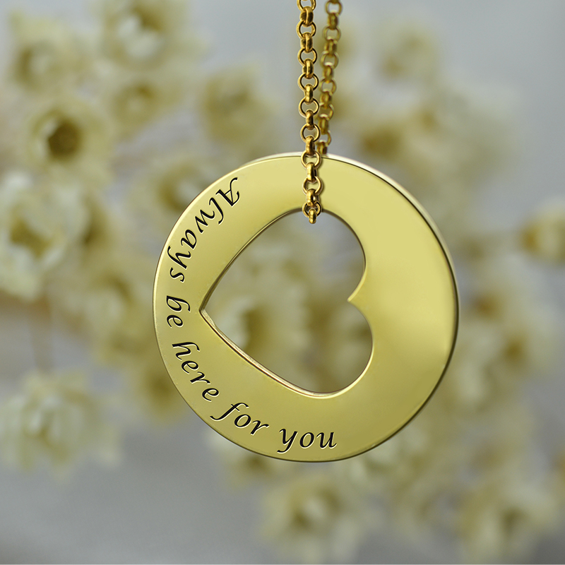 Det gör den perfekta gåvan att ge till betydande andra, familjemedlem eller nära vän. Välj något av våra presenterade citat för att gravera på detta utskärda hjärthalsband eller skriv ett av dina egna! Berätta för henne att du alltid kommer att vara här för dig som ett löfte nu!