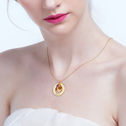 Denna personliga babyfotavtryckshänge är en hjärtlig gåva som säkert kommer att bli omhuldad. Du väljer en stor färgglad födelsesten för att matcha namnet graverat i cirkeln. En perfekt minnesgåva för alla nya mamma!