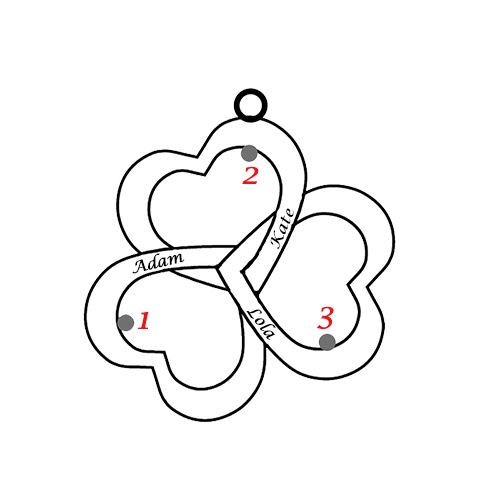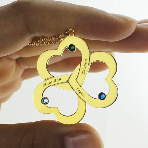 Birthstone Triple Heart 3 Namn halsband graverat i guld