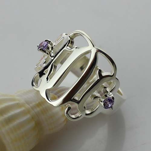 Birthstones Monogram Ring För kvinnor Sterling Silver