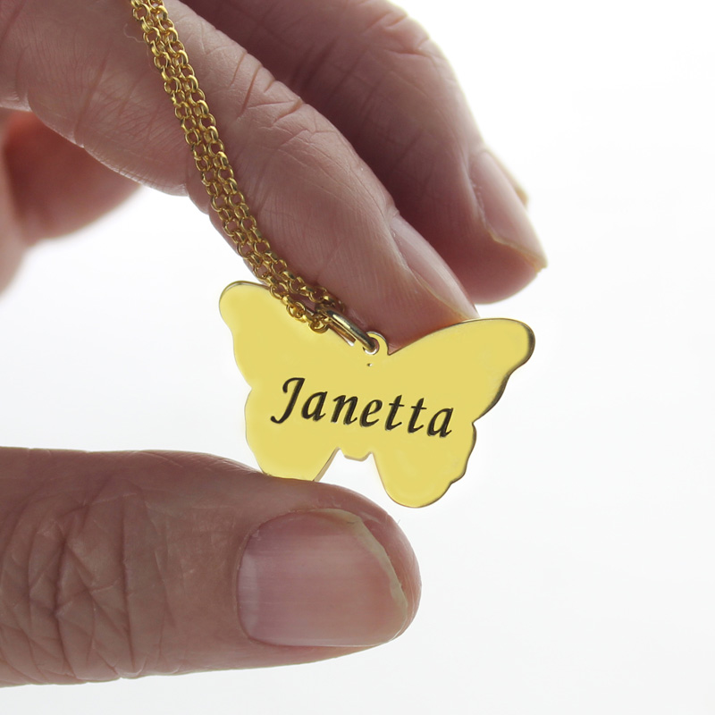 Anpassad charmig fjärilshänge graverad namn 18k guldpläterad - Din vän, syster eller dotter kommer att älska detta speciella hängehalsband.