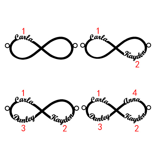 Anpassad 18K guldpläterad infinity halsband 4 namn - Infinity 4 namns halsband ger det bästa sättet för dig att visa upp vad ordet för alltid betyder för dig. Detta Infinity Namnhalsband är det perfekta tillbehöret till alla dräkter, dag eller natt, affärer eller casual. Detta namnhalsband är en perfekt present till dig själv eller någon familjemedlem, vän eller betydande annan för något speciellt tillfälle, inklusive födelsedagar och årsdagar. Söker du en brud för att få den perfekta gåvan till medlemmarna i ditt brudparti? Varför inte ett infinity name halsband.