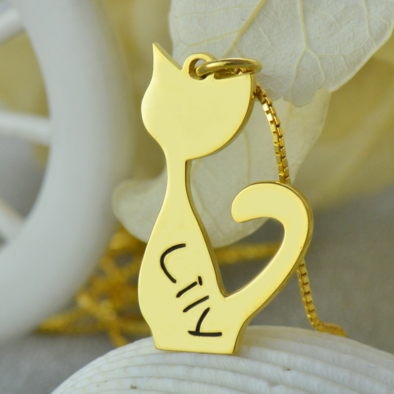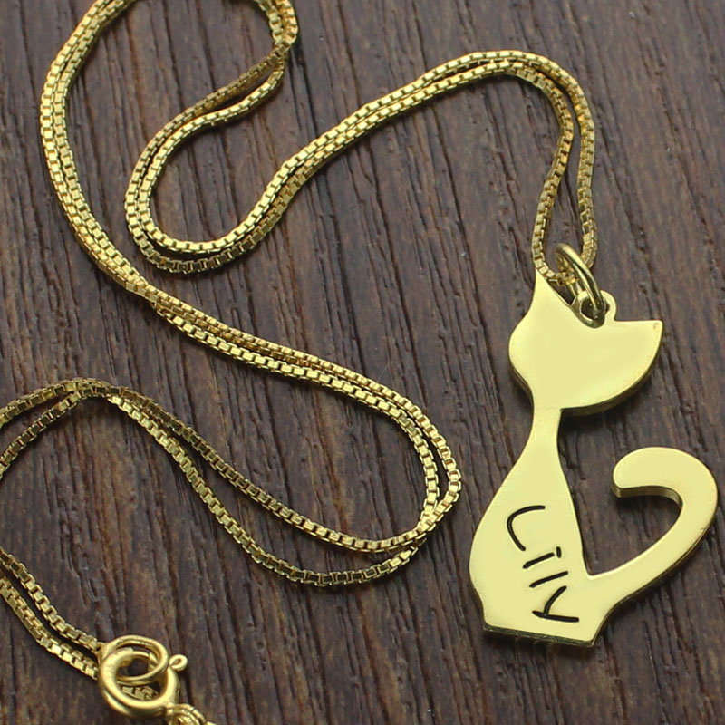 Custom Cat Name Pendant Necklace Gold Over - Katten är ett av de mest älskvärda husdjur som barn gillar. Graverade det namn du vill ha i det här lilla katthalsbandet, gör detta objekt mer stilfullt och personligt. Speciellt för barn är detta kattungehalsband ett utmärkt val! De kommer att vilja ha det hela tiden.