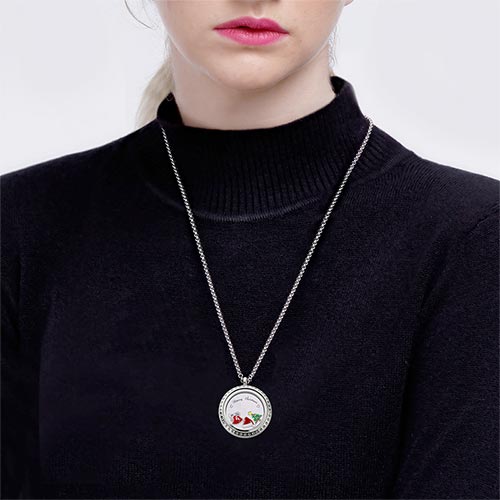 Vår magnetiska jul flytande hylsa är tillverkad av rostfritt stål i massivt smycken. Christmas Floating Locket kommer med 3 charm (julgran, julhatt, julklockor). Kan anpassas med gravering upp till 38 tecken. Julen kommer. Människor som älskar jul skulle definitivt älska det här locket.