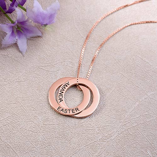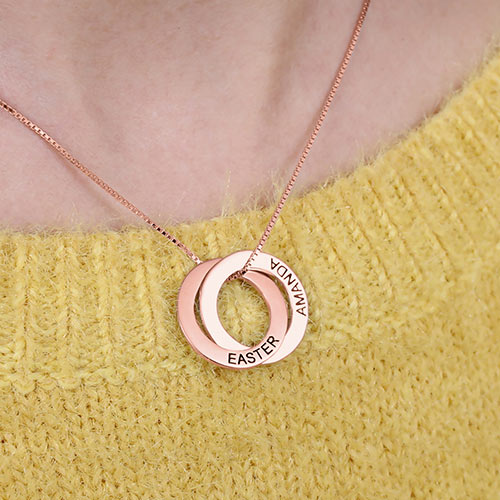 Graverade smycken gör den perfekta, personliga presenten till varje semester eller speciellt tillfälle, och det perfekta tillskottet till din egen kollektion! Detta fantastiska graverade ryska ringhalsband visar namnen på de som är närmast dig, eller om du vill kan du välja meningsfulla ord istället. En riktig klassiker som är perfekt för att para ihop med en mängd olika mode, det gör en meningsfull signaturbit för dig själv eller någon speciell. Finns också i en guldpläterings- och rosaguldpläteringsversion.