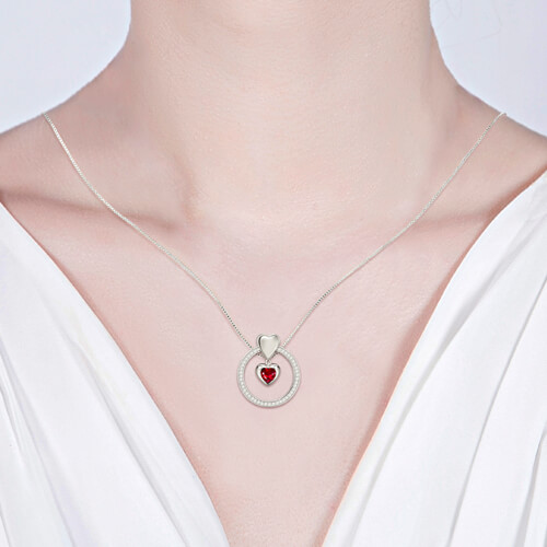 Låt denna speciella design - hjärta födelsesten i den glänsande cirkelhängen hitta sin väg in i dig eller en älskad hjärta när som helst på året! du kan välja stenfärg efter behov. Detta 925 sterling silver halsband är en bit som säkert kommer att provocera ett känslomässigt svar när det ges som en gåva till den speciella personen i ditt liv.