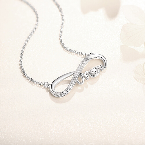 Eftersom en mammas kärlek är för alltid, skapar vår unika smyckesdesign ett personligt halsband för mamma . Detta sterlingsilver Infinity Mother's Necklace, omfamnat av en symbol för oändlighet i glänsande silver. förstärkt med bländande zirkon och ett kärleksfullt ord "mamma" graverat på baksidan, bokstaven "O" utformad som ett sött hjärta.Det representerar dina kärlekar till mor djupt. Och du kan välja födelsestensfärg till detta silverhänge, för att fira din mors gåva till mamma! Detta 925 sterling silverfödelsesten Infinity mamma hänge är handgjord i form av den graciösa oändlighet symbolen med glittrande diamant. Utformad för att röra alla mammas hjärta. Och den finns i en sammetpåse och presentförpackning, perfekt för gåva. Detta personliga hängsmycke med födelsesten är en mors glädje, vänta inte. beställ nu för mamma!