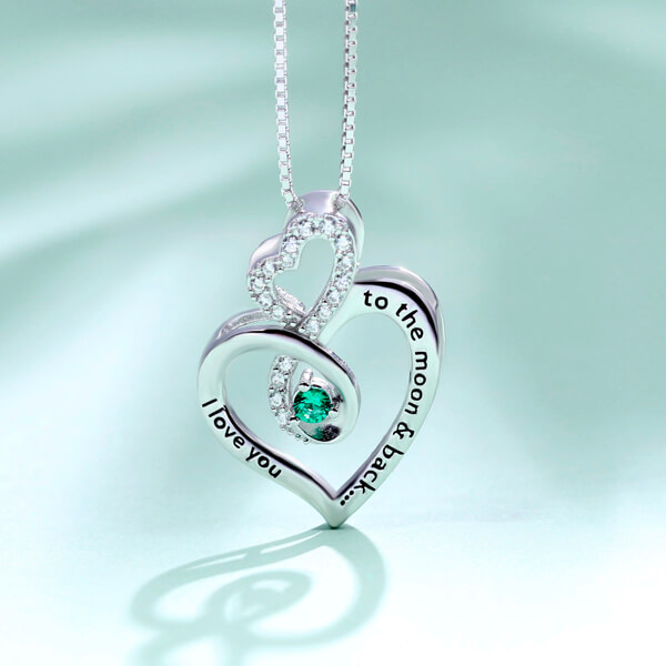 Infinity Custom Jag älskar dig till månen och tillbaka månadssten Necklace gör en vacker present till den speciella någon. Infinity månadssten Pendant är en vacker symbol för kärlek som aldrig slutar. Detta fantastiska halsband kommer på en glittrande födelsesten, framsidan av hjärthängen är orden "I Love you to the Moon and Back", för att visa din kärlek med söta ord . gör det till en perfekt present till en mamma, mormor eller den speciella någon i ditt liv.