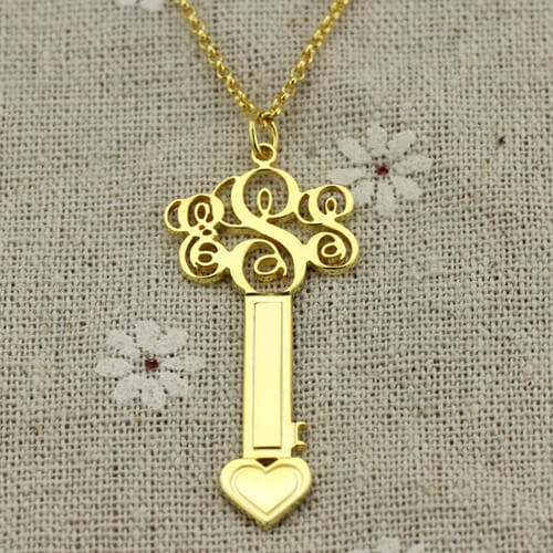 Custom Key Necklace med Fancy Monogram 18k guldpläterad