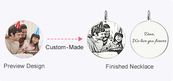 Anpassat halsband - Du kan anpassa det här halsbandet med ditt foto och välja den text du vill uttrycka för texten runt fotot, till exempel: Jag älskar dig på 100 språk/Jag älskar dig för alltid på 100 språk/Grattis på födelsedagen på 100 språk. Om du inte vill ha någon text runt ditt foto kan du bara välja alternativet med "Endast foto utan text".