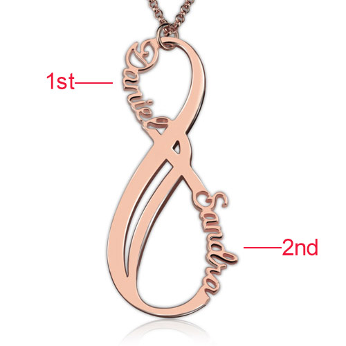 Oändlighetssymbolen kan betyda evig kärlek och vänskap och nu kan du anpassa oändligheten med det vertikala infinity-halsbandet. Anpassa detta halsband med två namn för att visa vem din för alltid är.
