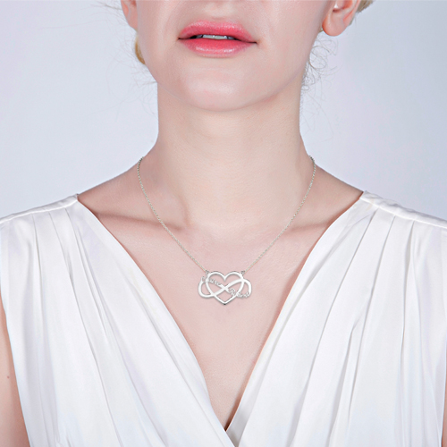 Vår halsband med infinity- och hjärtnamn är en elegant och utsökt design. Skäm bort dig själv eller dina kärlekar med detta magnifika hjärta infinity-par 2-halsband.