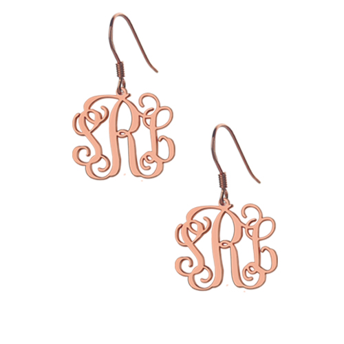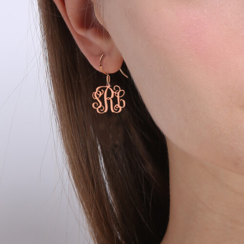 Anpassade Små monogram halsband & örhängen i rosaguld