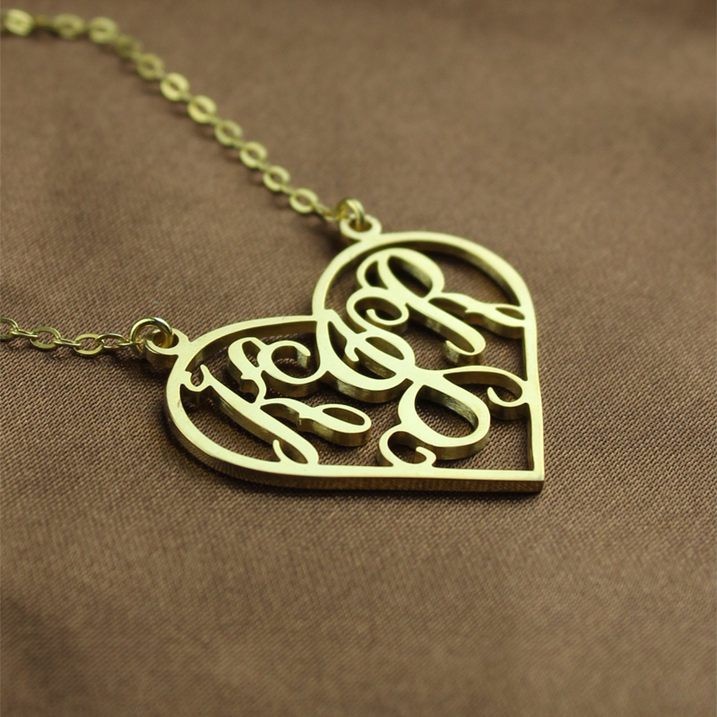 Cut Out Heart Monogram Necklace 18K Gold Plated