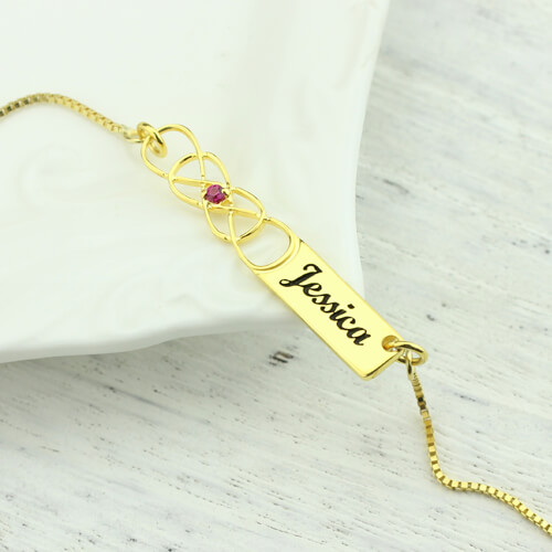 Barhalsband med dubbelt oändligt halsband är mode och personligt. Du kan gravera valfritt namn eller ord på baren. Det är den bästa gåvan för att uttrycka din kärlek till var och en.