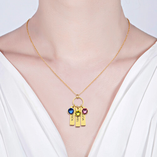 Graverad 3 Bar Bar Gold-halsband med födelsestenar för mödrar