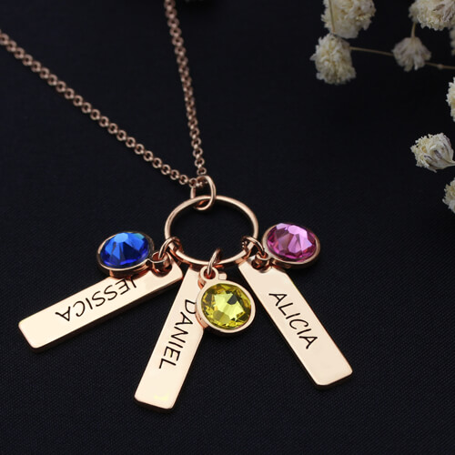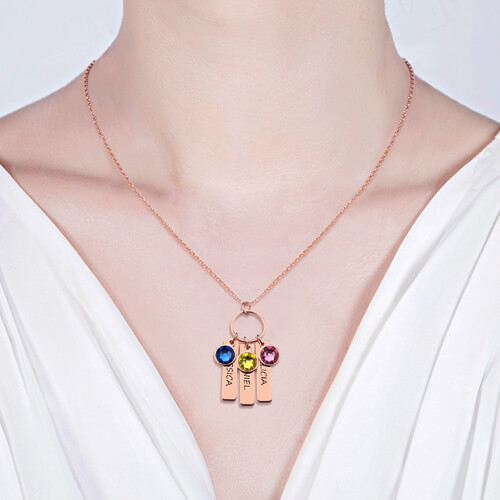 Graverad barhalsband med födelsestenar för mödrar i rosaguld