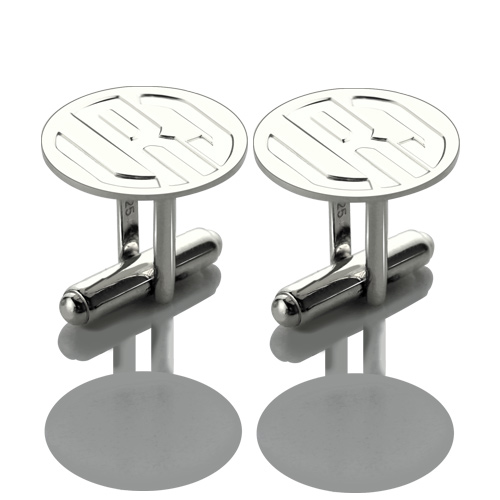 Graverade Block Monogram Disc Manschettknappar Sterling Silver