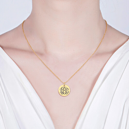 Denna perfekta skiva har ett vackert monogram upp till tre bokstäver du väljer. Det är elegant och subtilt, och det perfekta sättet att visa upp hur unik du är. Ett monogram är vanligtvis strukturerat med efternamnet som den stora initialen i mitten, den vänstra initialen är förnamnet och den högra initialen är mellannamnet.