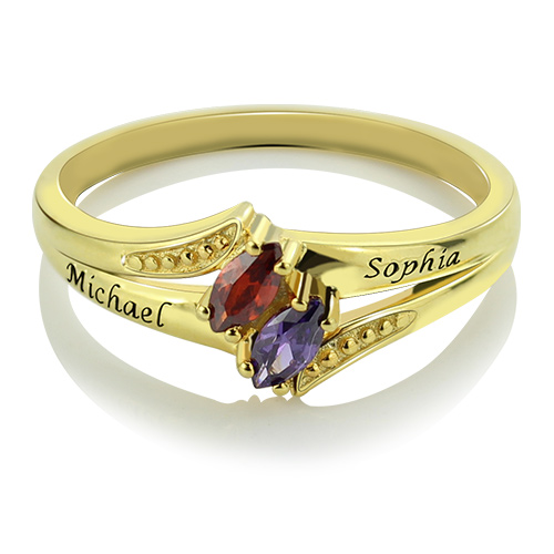Graverade dubbla födelsestenar Namnring 18K guldpläterad silver