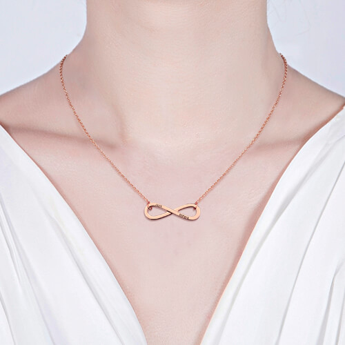 Tycker du fortfarande att gåvan kan vara minnesvärd, Detta oändlighetshalsband är ditt bästa val. Kom ihåg ett speciellt datum, person eller band med denna vackra, klassiska Infinity-design som kan stämplas och anpassas med namn, ord eller ett valfritt datum .