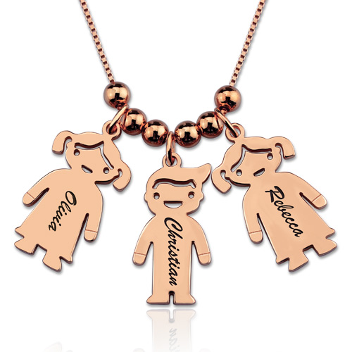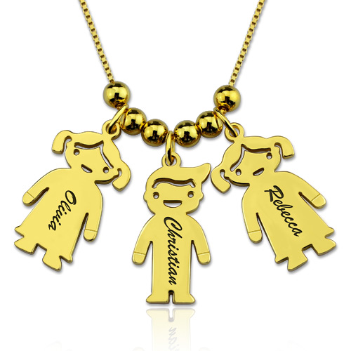 Graverade Kids Charm Necklace kan beställas med flera personliga pojke- eller tjejcharm enligt ditt val. Och sedan kan du gravera varje barns charm med namnet på det barn det representerar! Eftersom du kan få så många charm du behöver, gör detta charmiga halsband en idealisk gåva för både mödrar, mormor och barn! Det är ett perfekt halsband för mammor överallt!