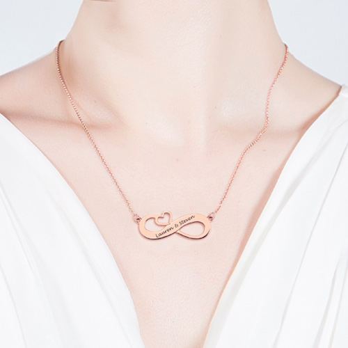 Graverade namn Infinity hjärthalsband i rosaguld