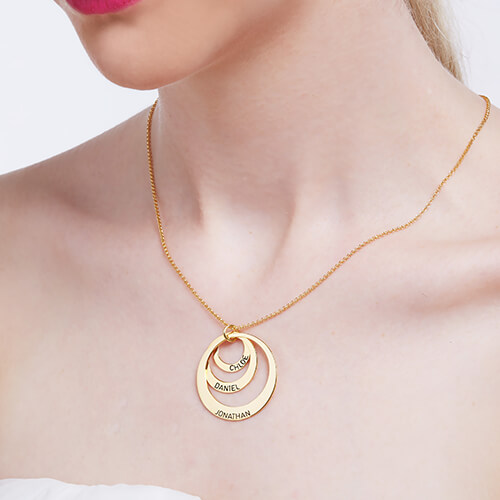 Graverad tre-skivans namnhalsband för mor 18K guldpläterad