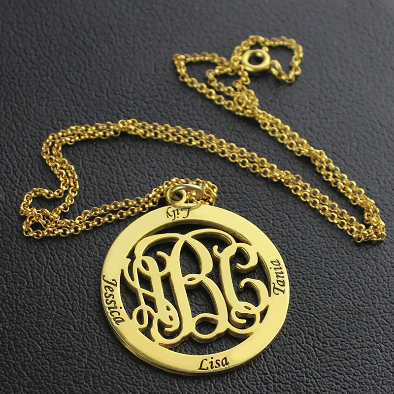 1. Ett monogramhalsband är vanligtvis strukturerat med efternamnet som det stora initialet i mitten, förnamns initial till vänster och mellannamn initial till höger.