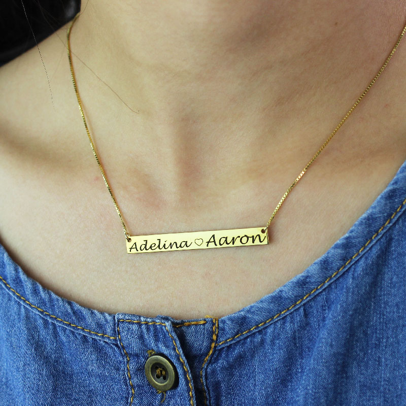 En bar ger stabilitet, och det är vad du tillhandahåller för mig. Vi är bättre tillsammans! Detta underbara guldhalsband är handgjorda i förgyllt silver. Startpriset är för en ram. Ett klassiskt stycke som är fyllt med mening. Stämplade ditt namn på den här specialiserade massiva guldstångshalsbandet för att minnas din kärlekshistoria! Bra sätt att visa alla dina söta kärlek. Par halsband är ett charmigt sätt att berätta världen om den du älskar. Du kan gravera två namn på detta barhänge halsband, så det är också en perfekt gåva till vänner också! Behöver du hjälp med att hitta din halsbandstorlek? Klicka här!