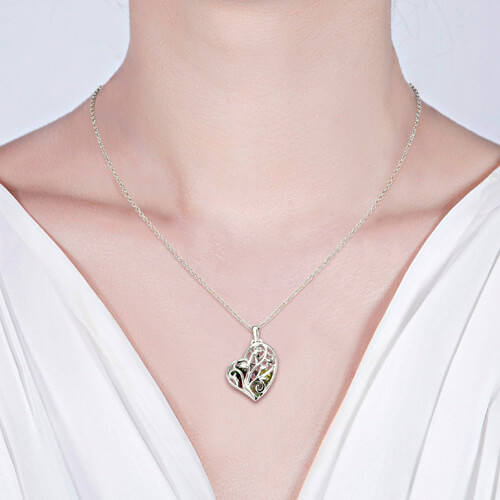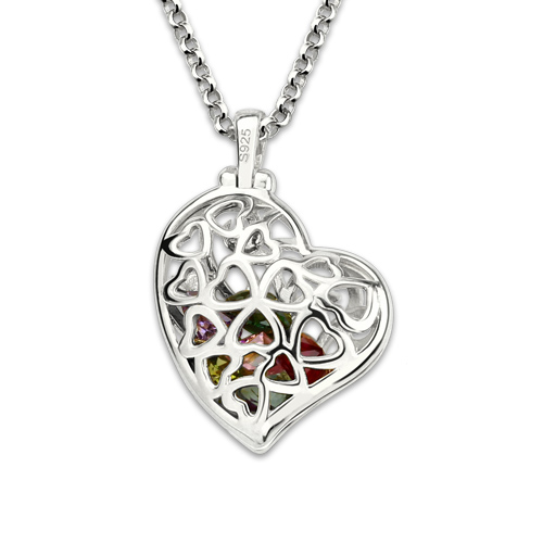Heart Cage Family Tree Necklace With Birthstones Platinum Plated