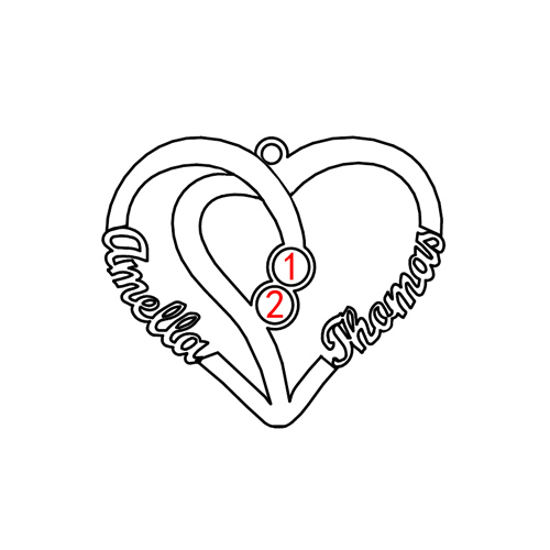 Hjärthalsband med 2 namn och födelsestenar förgyllt silver