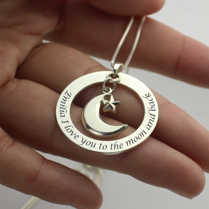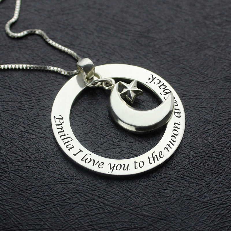 Personliga gåvor - I Love You To The Moon and Back Moon & Start Charm Pendant - Kärlek är så vacker och fantastisk! Bara anpassade en kärlek halsband för att minnas din kärlek med älskade namn på den. En perfekt personlig present till din flickvän, present till mamma, alla hjärtans dag eller något tillfälle!