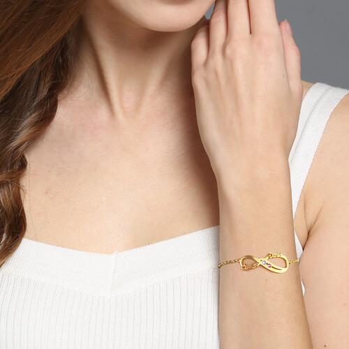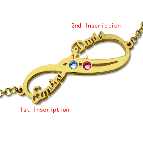 Infinity Namnarmband med Birthstones 18K guldpläterad
