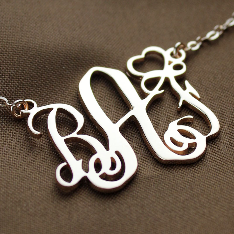 Initial Monogram Heart Necklace Rose Guldpläterat silver 925