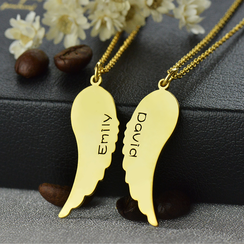 Matchande ängelvingar halsband set för par 18K guldpläterad - Betydelsen av personliga Angel Wings Charm Name Necklace är just det, bara för dig och mig. För att ge dig vackra smycken kan du gravera för att skapa en verkligt tidlös gåva.