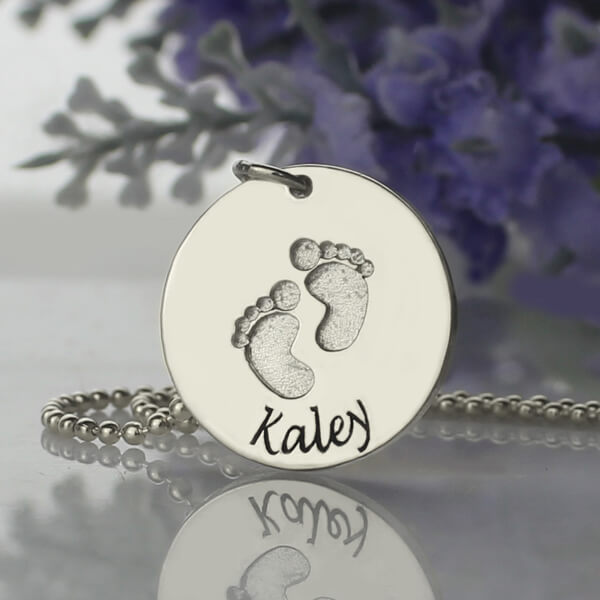 Memory Baby Footprints Namn Halsband Sterling Silver