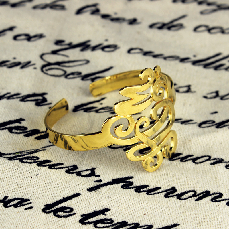 Monogram manschettarmband Handskriv 18K guldpläterad - Alla bokstäver design för hand. Du kan inte hitta samma design från annan butik. Det är verkligen ett unikt armband.