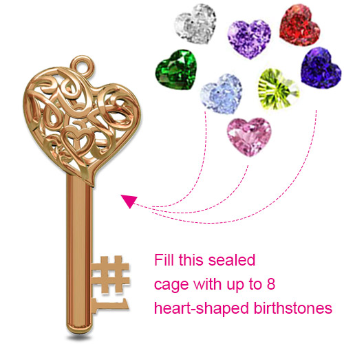 No.1 MOM Heart Cage Key Necklace, du kan lägga till 1-8 födelsesten i hjärtat buret, det representerar en familjesammanträde och djup kärlek. Är en utmärkt present till mamman. Formen på tangenterna kan symbolisera att man öppnar någons hjärta och kan också användas för att ge den person du gillar.
