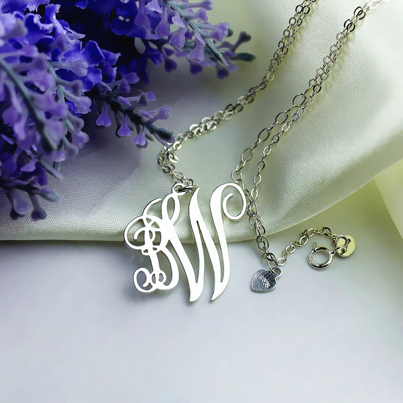 1. Ett monogramhalsband är vanligtvis strukturerat med efternamnet som det stora initialet i mitten, förnamns initial till vänster och mellannamn initial till höger.
