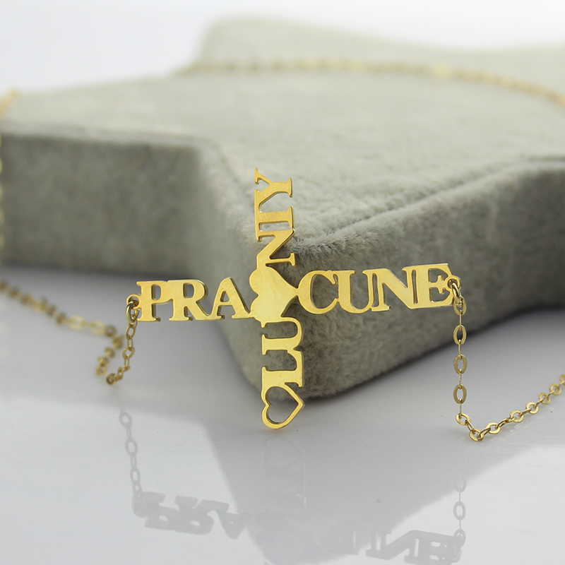 Personaliserade 2 namn korsade halsband förgyllt 925 silver