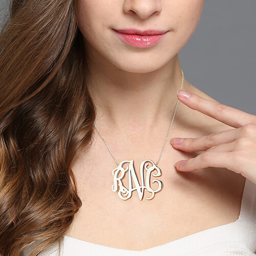 1. Ett monogramhalsband är vanligtvis strukturerat med efternamnet som det stora initialet i mitten, förnamns initial till vänster och mellannamn initial till höger.