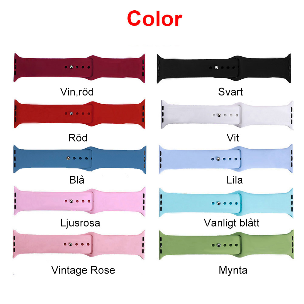 OBS: Passar för sportklockor för Apple-klockor med en bredd på 24 mm (0,94 tum) och en tjocklek på 3 mm (0,12 tum). Det är mest lämpligt för storleken 42 / 44MM, storleken 38 / 40MM har lite glidning, men det påverkar inte slitage.